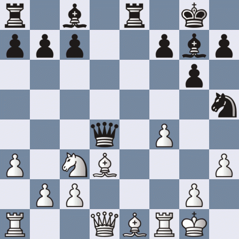 [Event "Khanty Mansyisk, 2010"] [White "Ahmid Juddan"] [Black "Austin Yang Ching Wei"] [FEN "2rr2k1/1b1q2p1/p2Pp1Qp/1pn1P2P/2p5/8/PP3PP1/1BR2RK1 w - - 1 0"] %Hidden=1 1. Qh7+ Kf7 2. Bg6+ Kf8 3. Qh8#