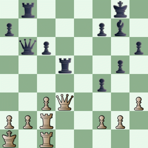 [Event "Germany, 2012"] [White "Mariusz Szewczyk"] [Black "Regina Buechle"] [FEN "4r1k1/5p1p/p4PpQ/4q3/P6P/6P1/3p3K/8 b - - 0 1"] %Hidden=1 1... Qe2+ 2. Kh3 Qf1+ 3. Kg4 Qf5#